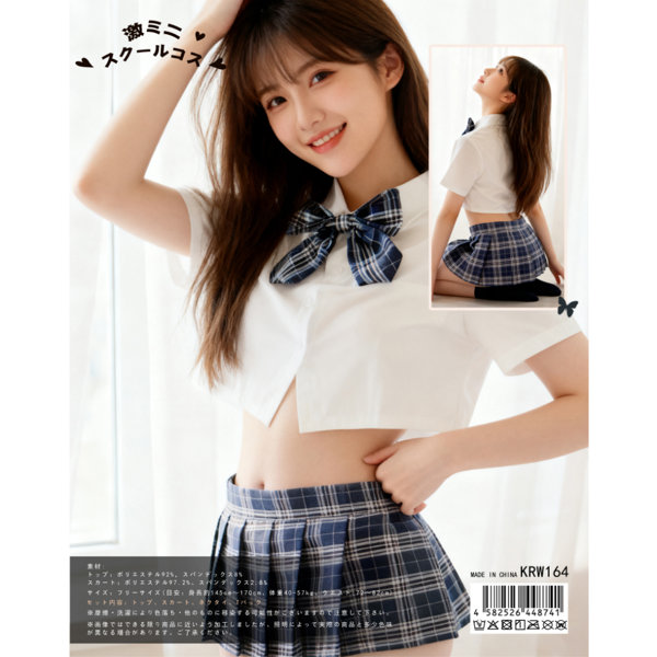 ■商品サイズ:フリー ☆スクールコスの定番を押さえつつキュート&SEXYにアレンジ! ☆ちょっぴり透け気味のシャツで誘惑オーラをまとっちゃう ☆学園コスはミニスカで決まり! 清楚さをキープしつつおへそと脚見せすっきりとした透明感と清楚さを身にまとう純情スクールコスチューム! オーソドックスな制服のデザインはそのままに、男子のハートをくすぐるポイントもしっかり押さえたスグレモノ。 白のショート…