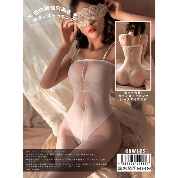 白の純情穴あき ボディストッキング