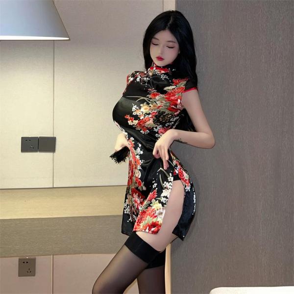 ・商品の状態 : 新品・カラー (ブラック系)・商品内容 チャイナミニドレス(ストッキングは付属しません)×1・サイズ フリーサイズ・商品の素材 : ポリエステル、他(商品説明)妖艶な魅力と伝統美が融合した、ミニ丈のチャイナドレスミニスカワンピース。 艶やかな黒地に咲き誇る鮮やかな和風の花柄が、見る者の視線を釘付けにし、華やかな存在感を放ちます。 高めの襟元とタイトなボディライ…